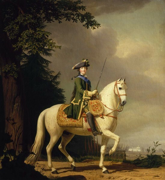 Портрет Екатерины II в гвардейском мундире на коне Бриллианте